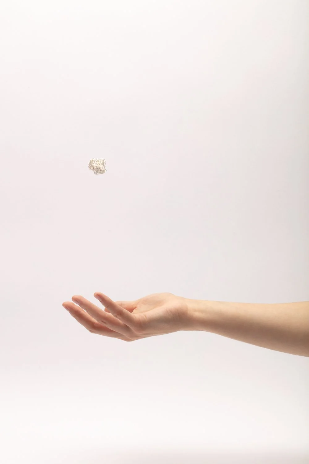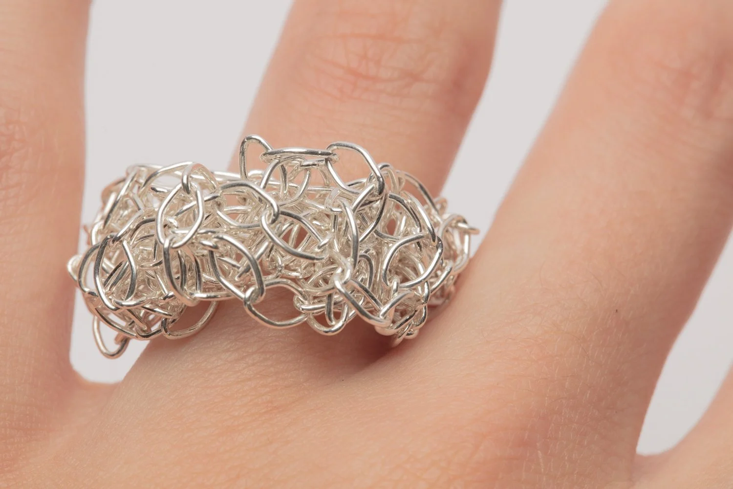 The chain ring moves with you, soft and yet hard, sometimes it collapses, sometimes it lies there like a ring lies there. A different kind of fidget toy. A playful approach to the constantly changing shape. The goldsmith's equivalent of a cat's ball of wool.