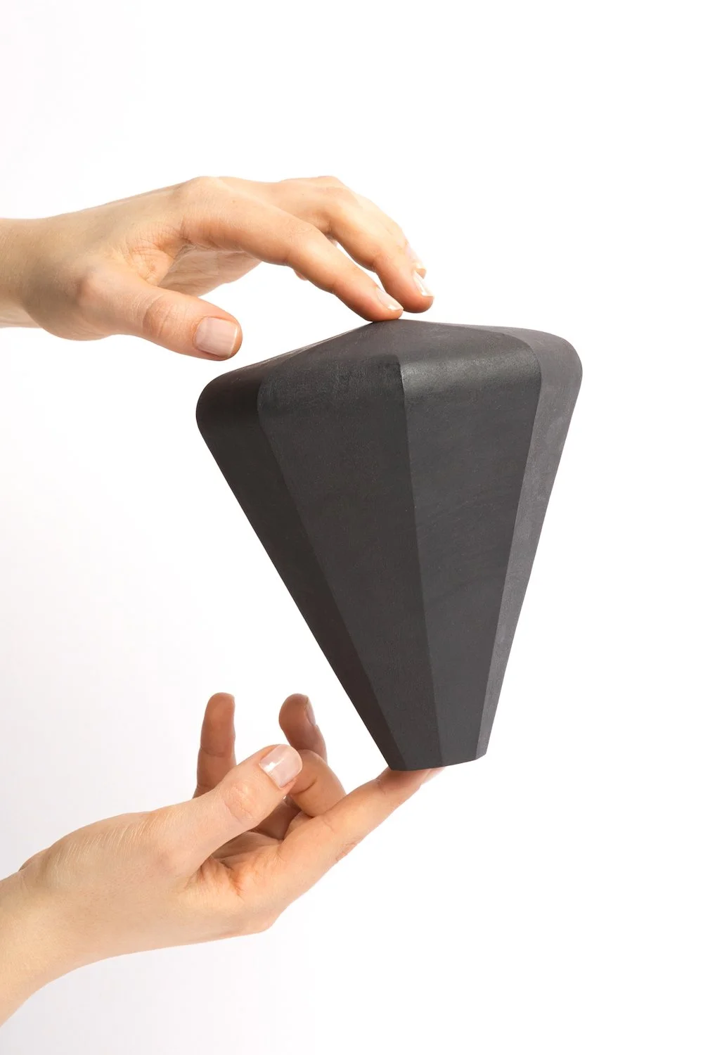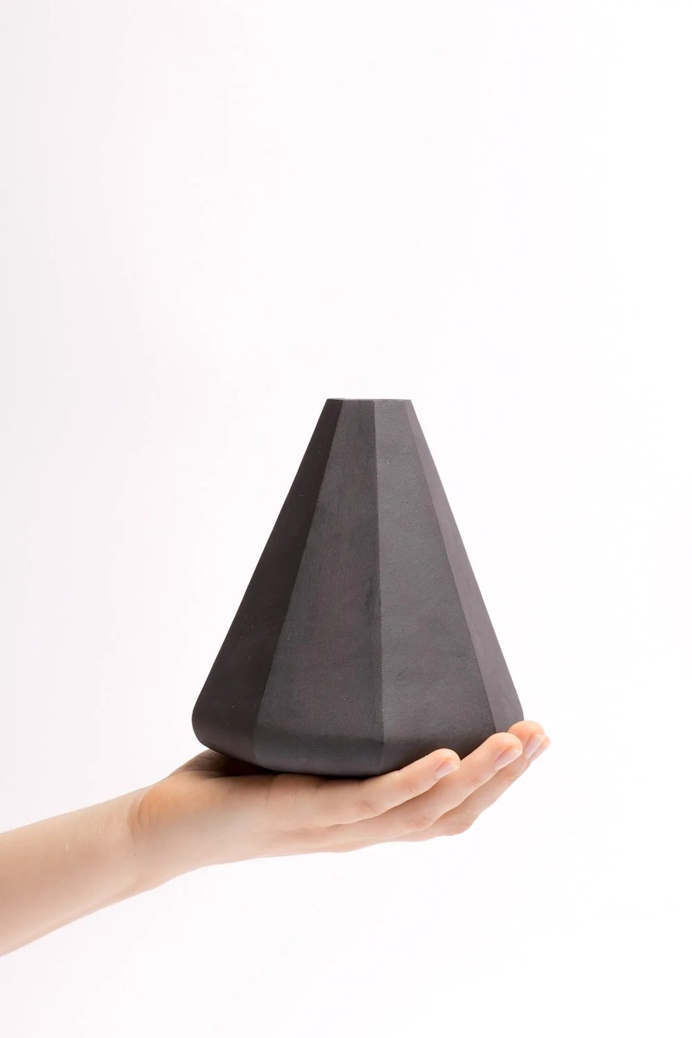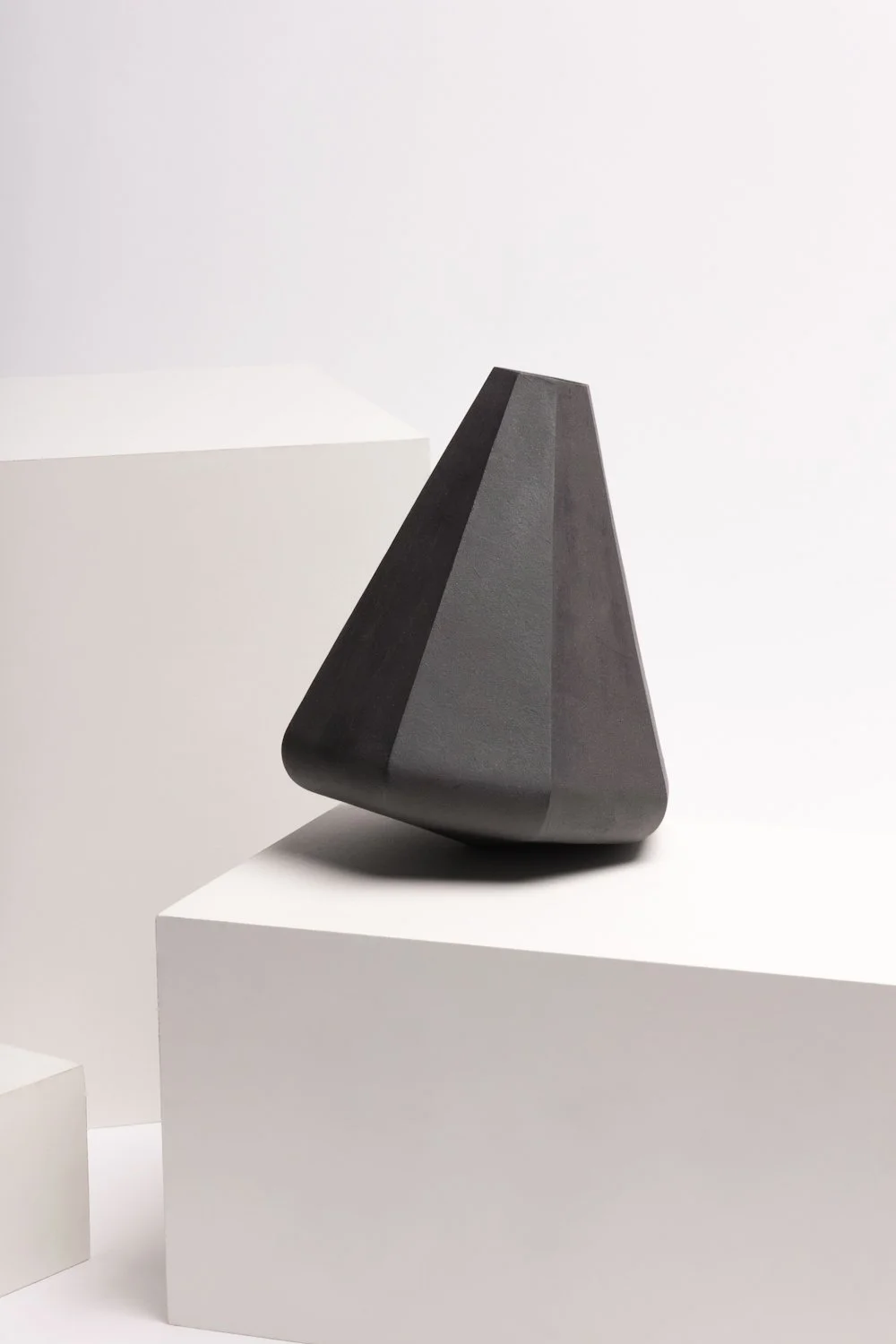 An object inspired by a sober everyday object: a roadside bollard spotted in Düsseldorf. The initial shape of the bollard is turned 180 degrees, upside down. The greenery that often grows around the bollard now finds its way into the shape.